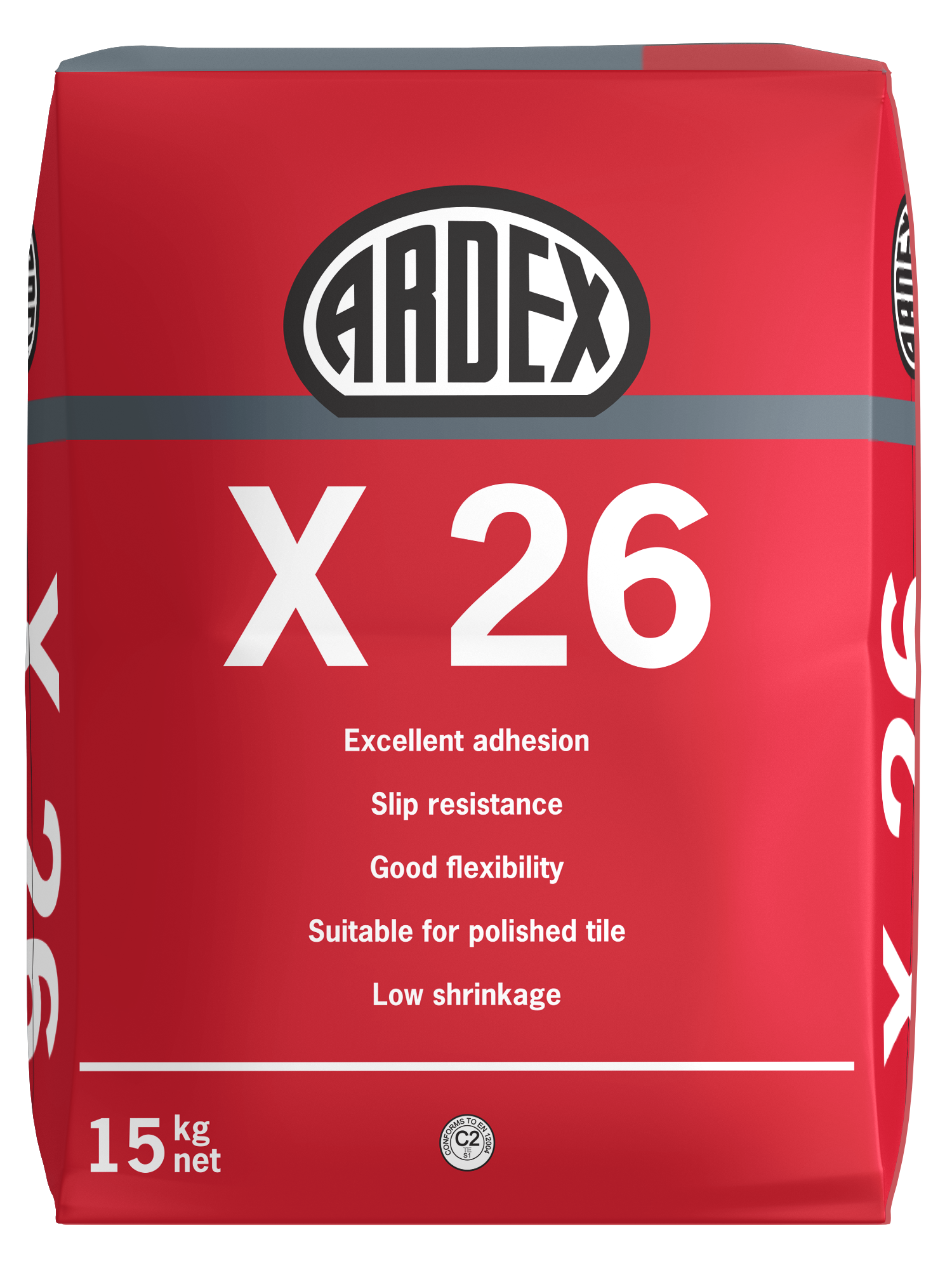 아덱스 X26 (ARDEX X26)은 전문가용 고성능 타일접착제로 엄선된 시멘트와 규사 및 특수폴리머가 함유되어